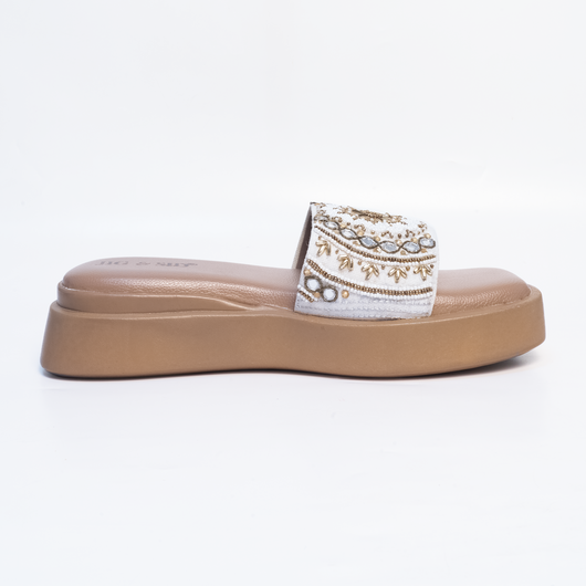 Upper Material: Embroidered Fabric with Beads, Sequins & Mirrors