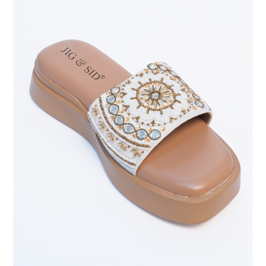 The Jig & Sid Golden Beaded Wedges are more than just footwear – they are a statement of timeless style. Whether you’re stepping into a festive celebration or attending a wedding, these wedges ensure that every step radiates grace, luxury, and confidence.