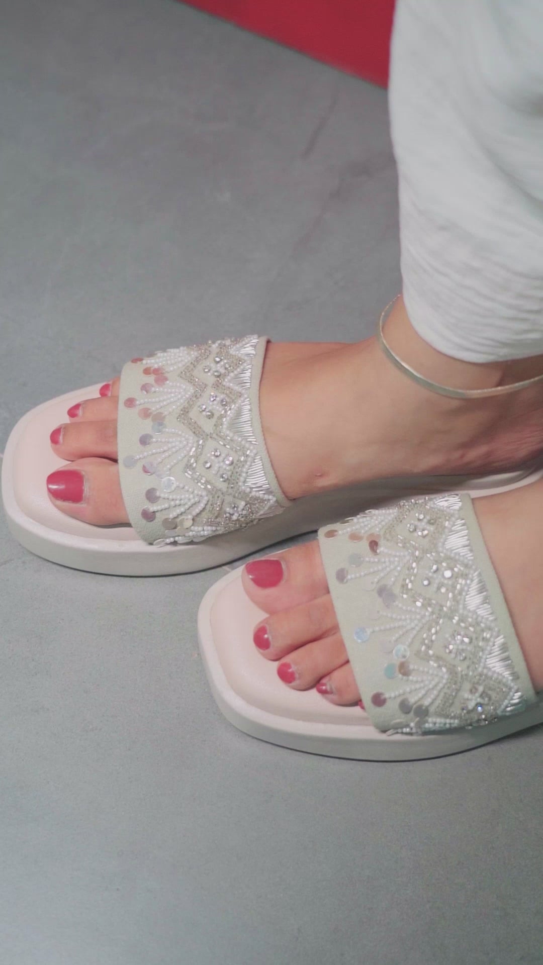 The Jig & Sid Silver Sequin & Bead Wedges are made for women who seek luxury, comfort, and sparkle in every step. Elegant yet versatile, they’re the perfect pair to complete your festive and party looks with confidence.